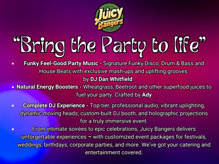 Welcome to the party of the Juicy Bangers - a celebration of music, food and FUN!
